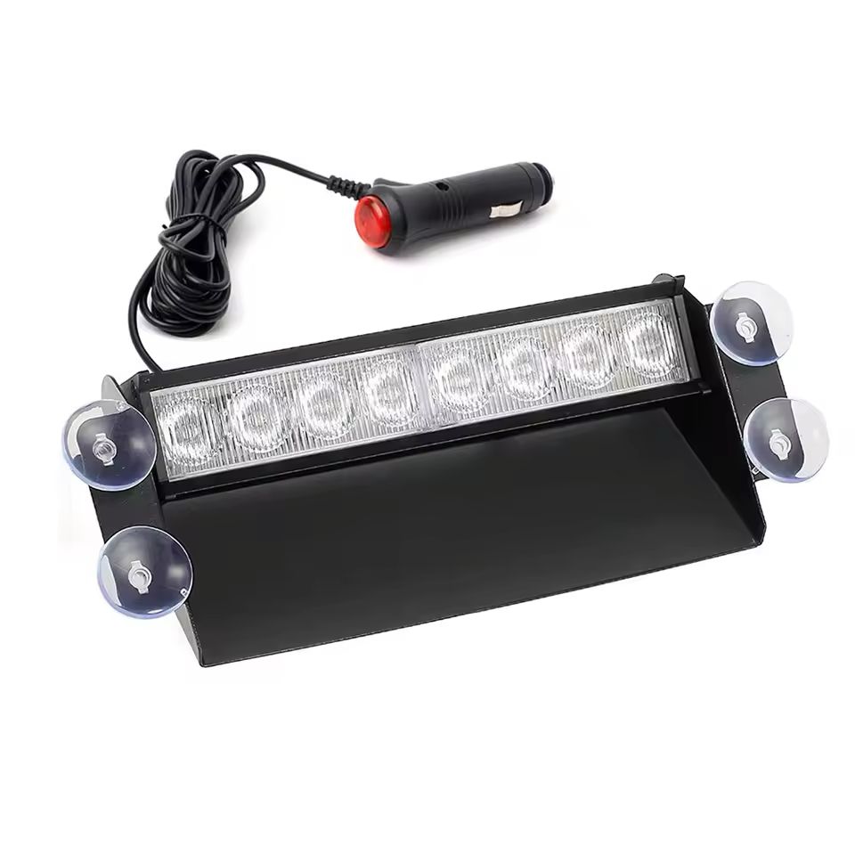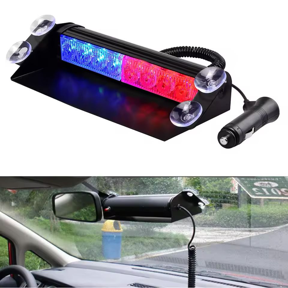 AutoBizarre 12V Car Dash Emergency Warning Strobe Red Blue Flasher Windshield Sucker 8 LED Light with Multiple Flashing Modes for All Cars, Emergency Vehicles, etc.