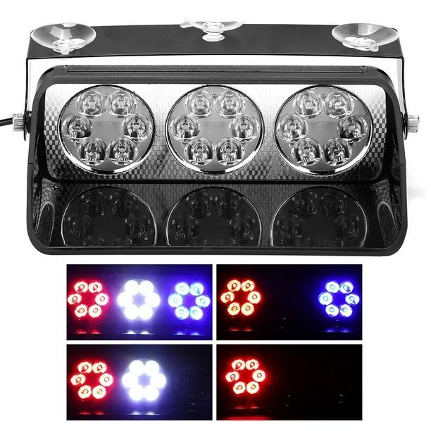 AutoBizarre 12V Car Dash Emergency Warning Strobe Red Blue White Flasher Windshield Sucker 18 LED light With Multiple Flashing Modes For All Cars, Emergency Vehicles, etc.