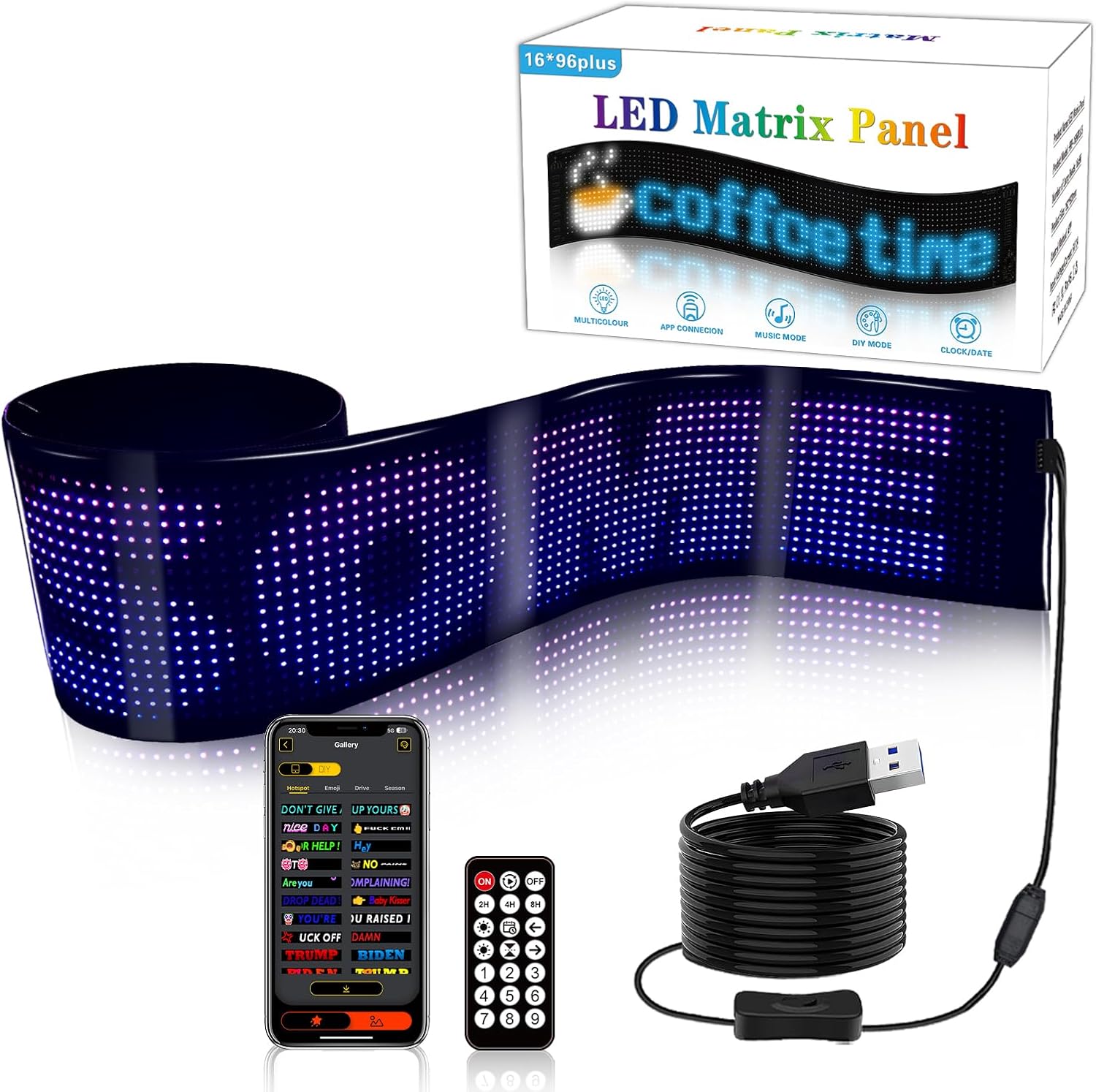 AutoBizarre 35x8 Inches Flexible Waterproof DIY Customizable LED Matrix Panel Display Screen Sign Board with Mobile Application and Remote Control for Cars, Home, Office, Shops etc