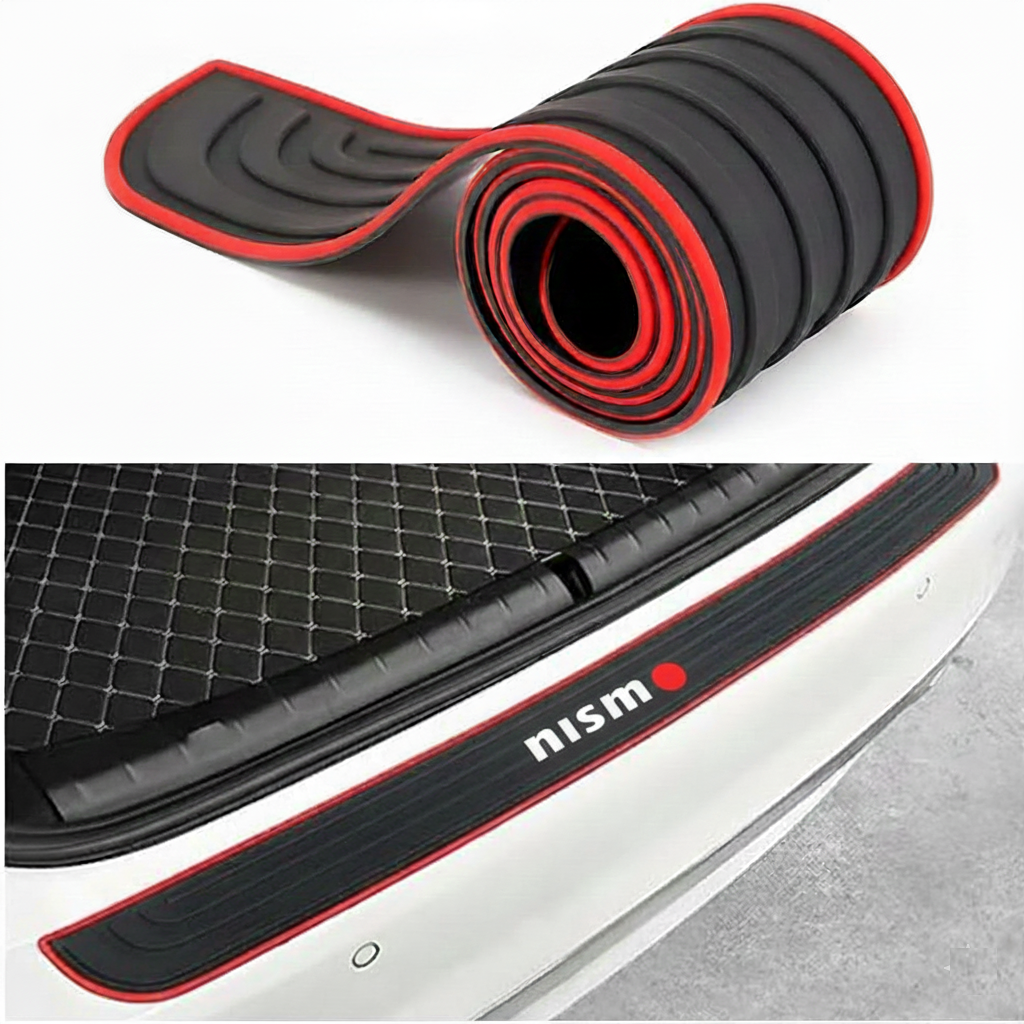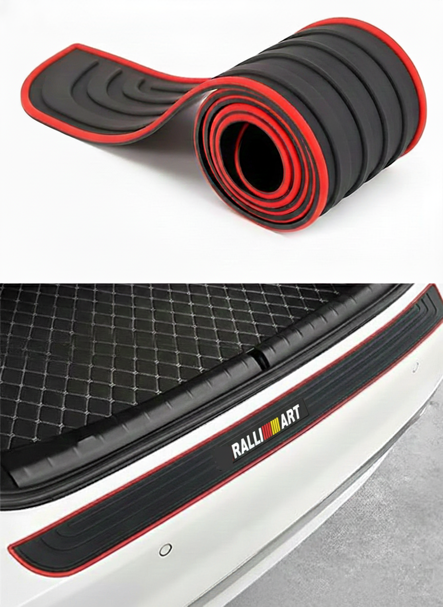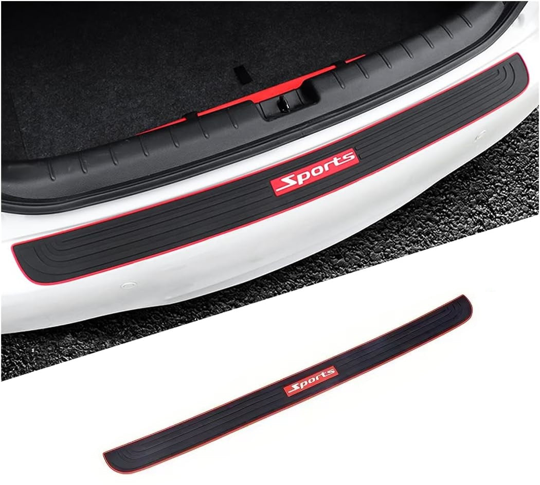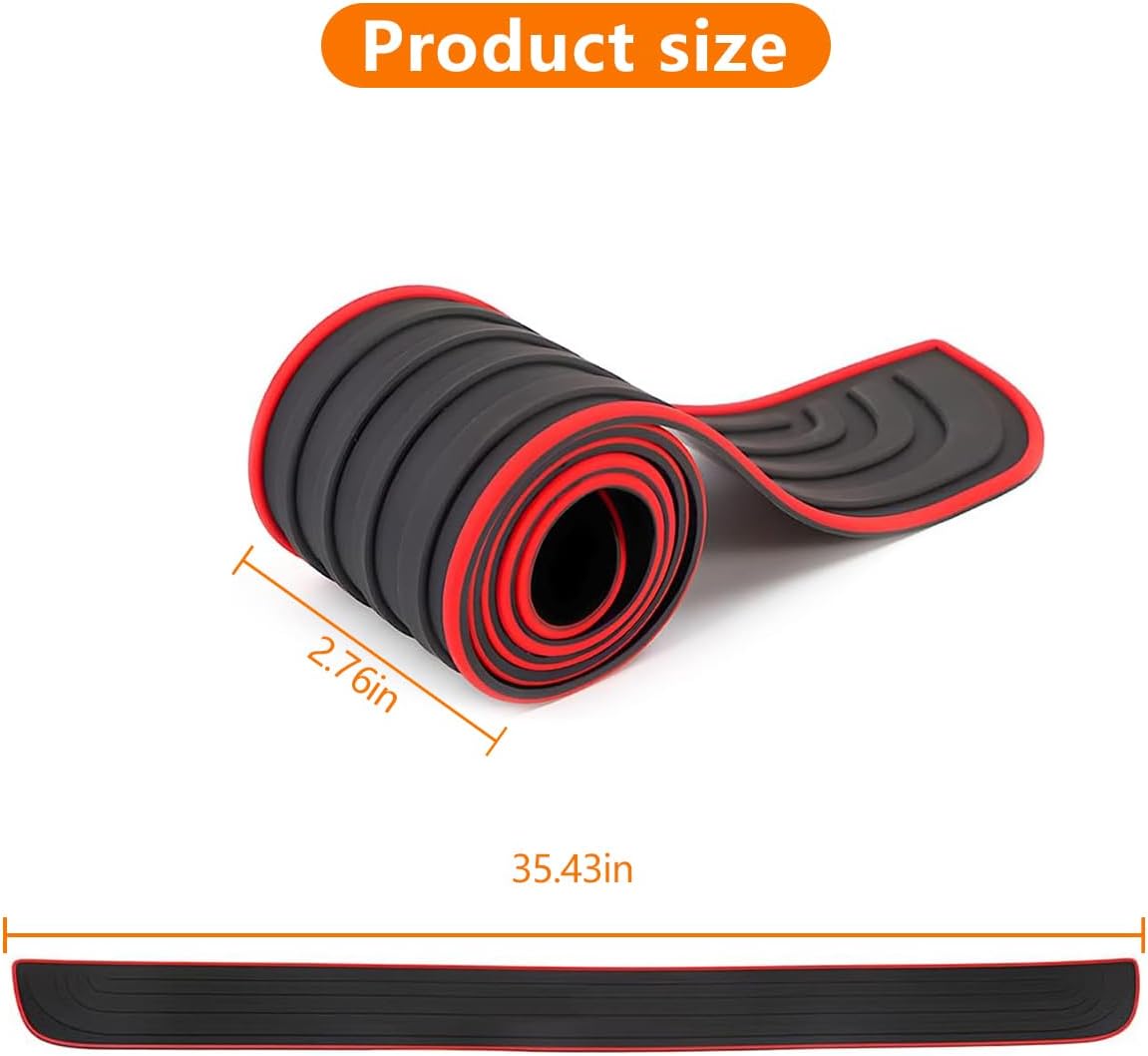 AutoBizarre 90cm x 7cm Black Red Car Rear Bumper Protector Guard Anti-Scratch Anti-Slip Car Trunk Door Sill Protector Rubber Strip for Trunk Protection and Decoration