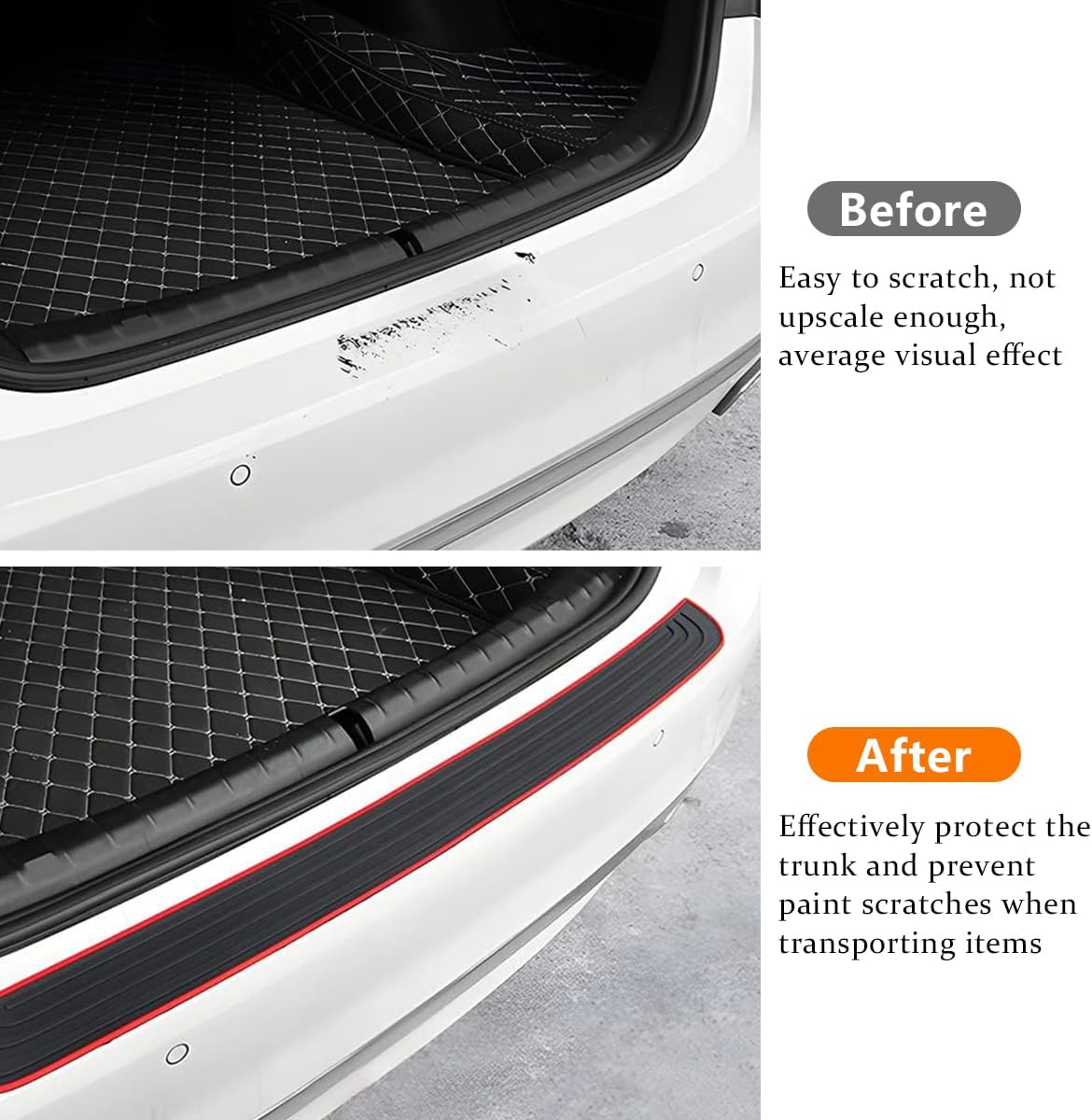 When loading and unloading luggage, toolboxes and other items in the trunk of the car, this strip effectively prevent scratches and damage and effectively protect the rear bumper of the car