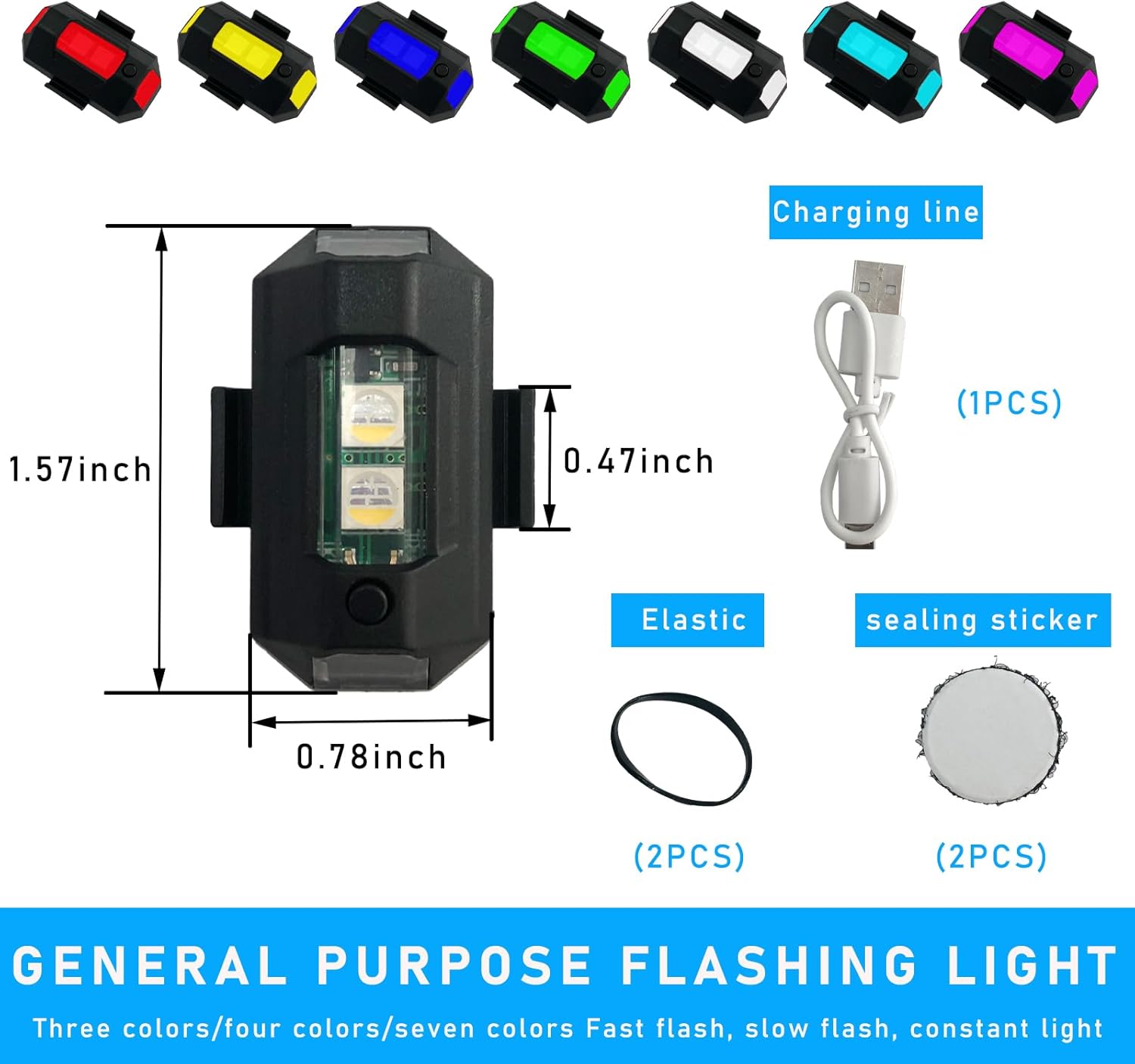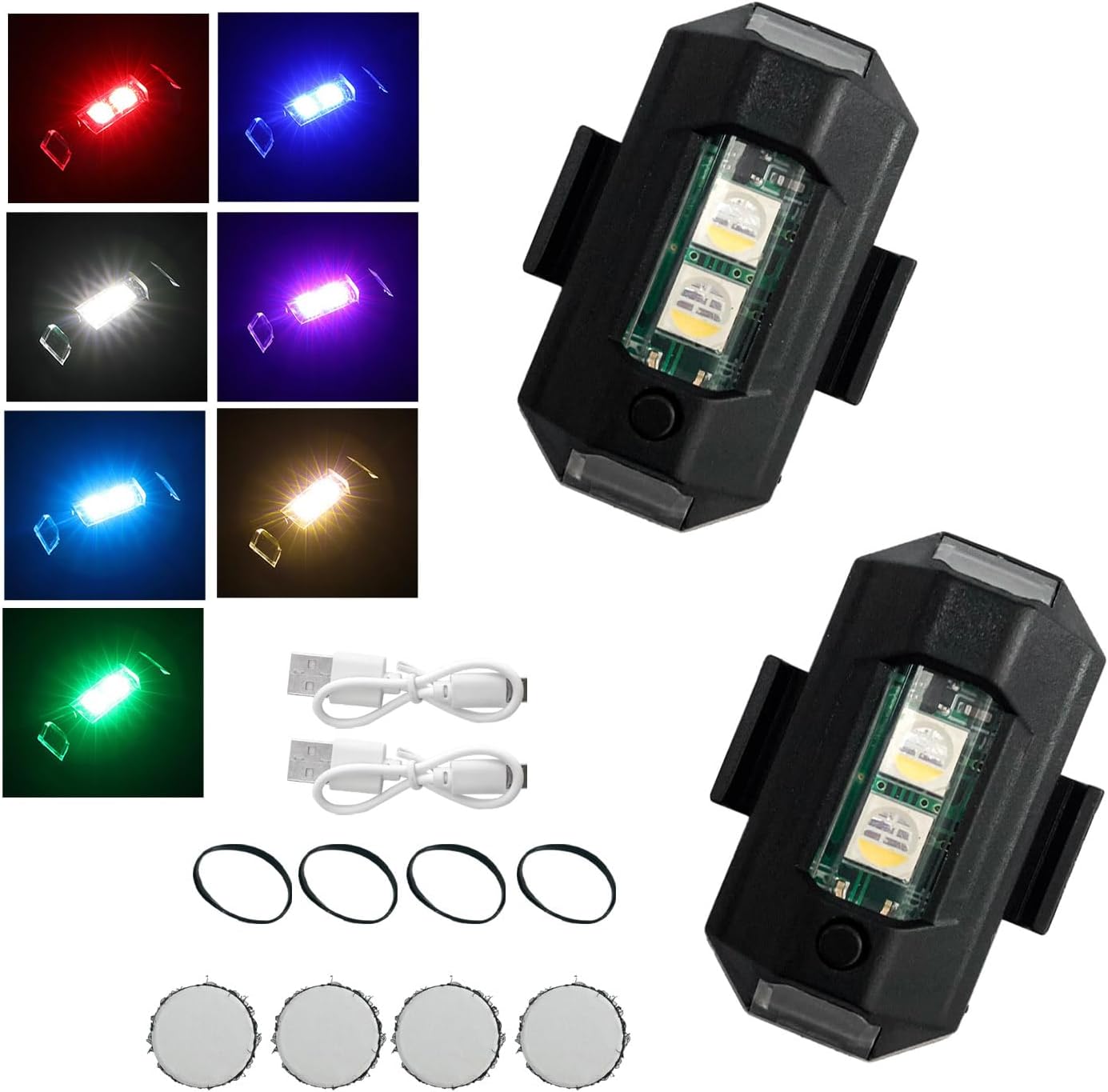 AutoBizarre Anti-Collision Waterproof 7 Color Rechargeable Mini LED Strobe Light Aeroplane Aircraft Drone Warning Flying Signal Safety Strobe Flashing Light for Car Motorcycle Bike Bicycle Drone Helmet