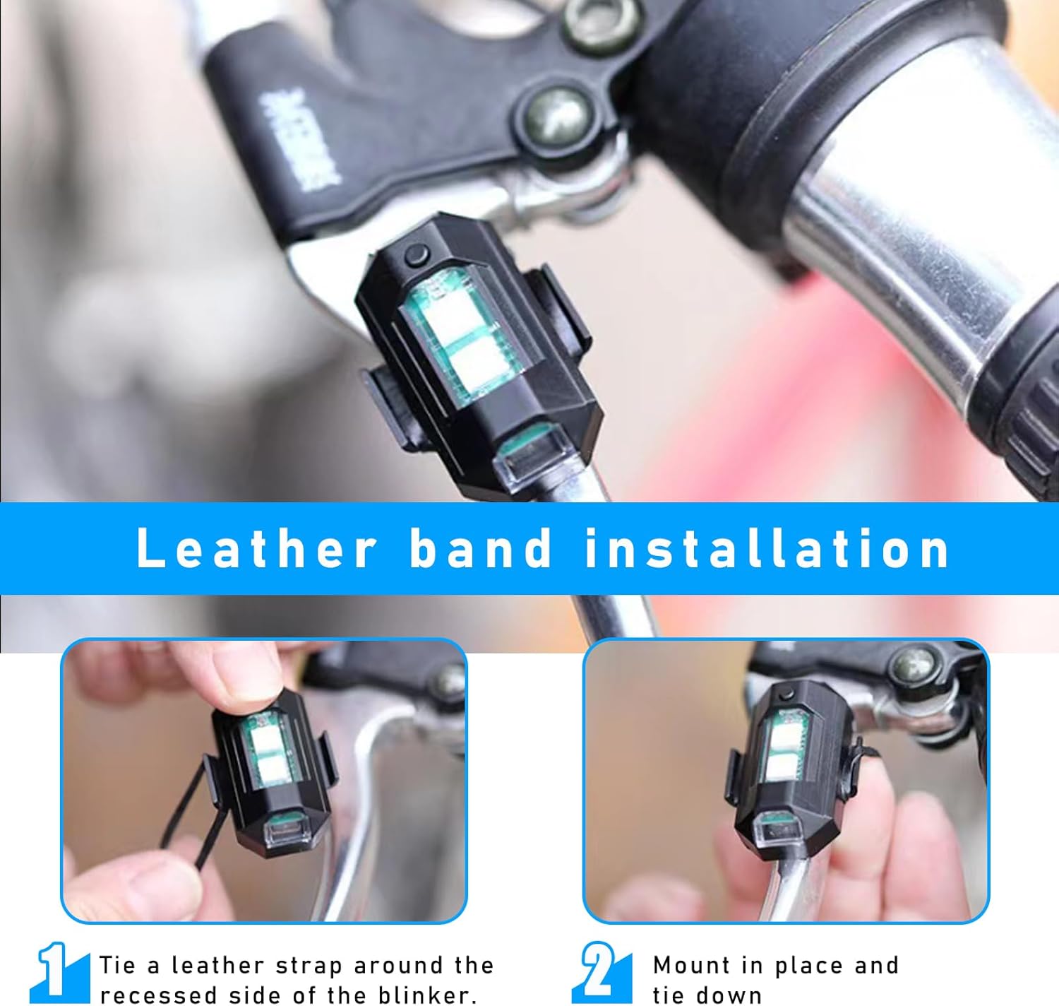 - This LED warning light has 2 installation methods. The first is sealing sticker installation. Take out the sealing sticker, peel off it and stick one side to the bottom of the strobe light. The second is rubber band installation. Attach a rubber band to the depression on one side of the strobe light, then wrap the rubber band around the wing and tie it to the depression on the other side of the strobe light.