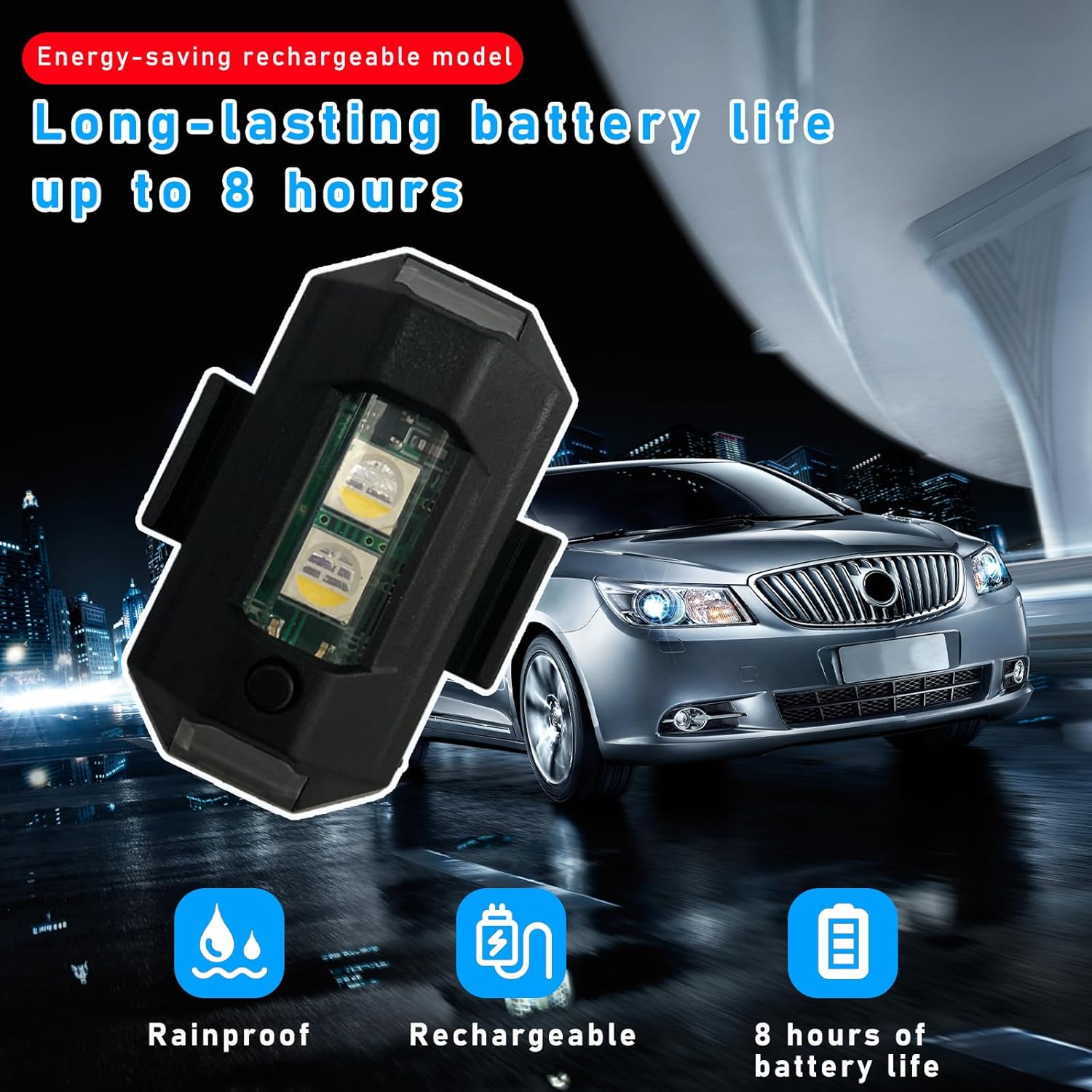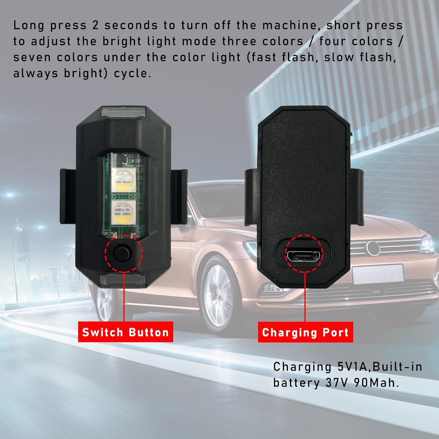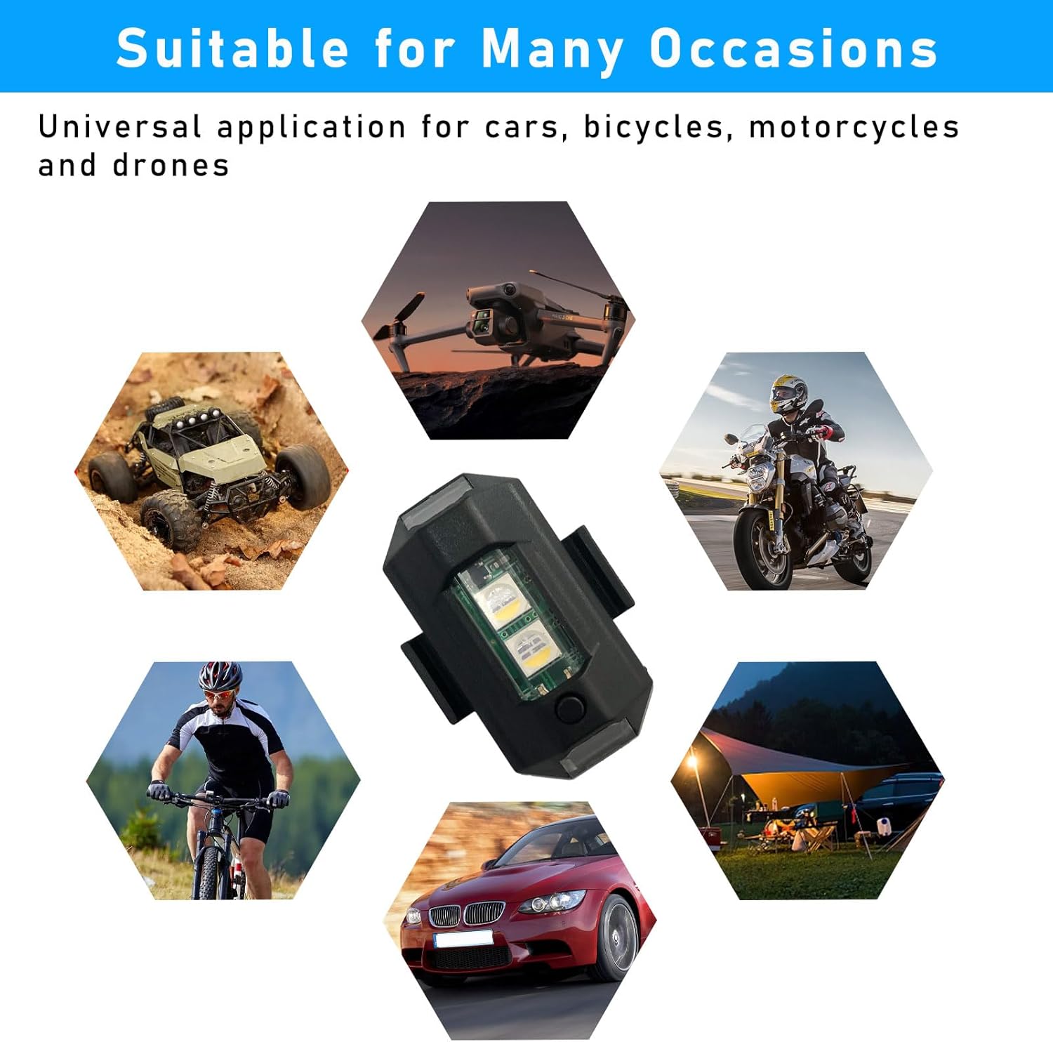 - Wide Application - can be used as vehicle emergency lights, LED safety lights on bicycle, motorcycles, drones, etc. It can also be used as a lighting lamp for picnics, camping, fishing and hiking.