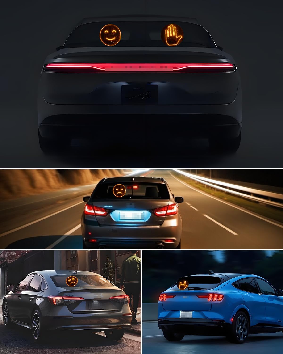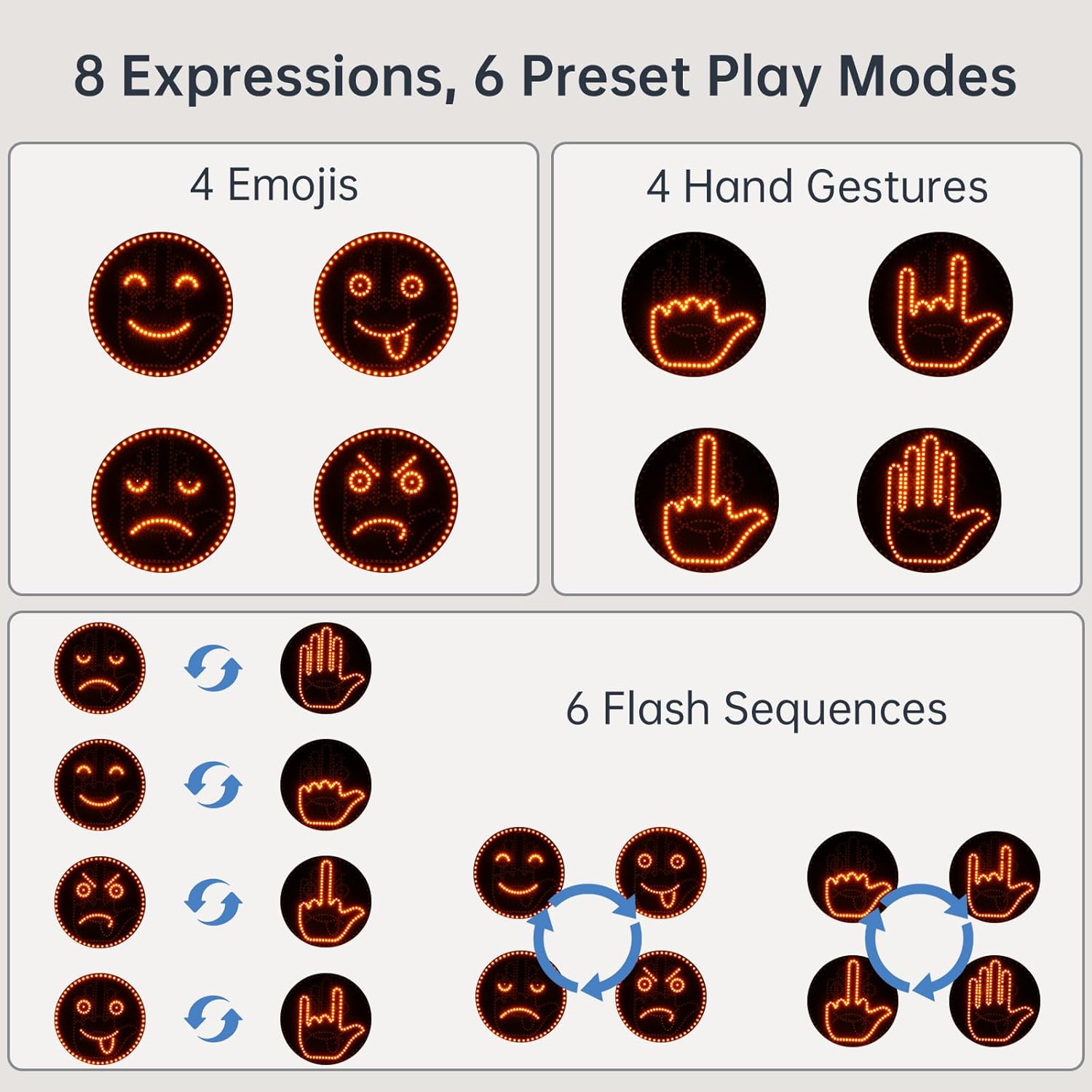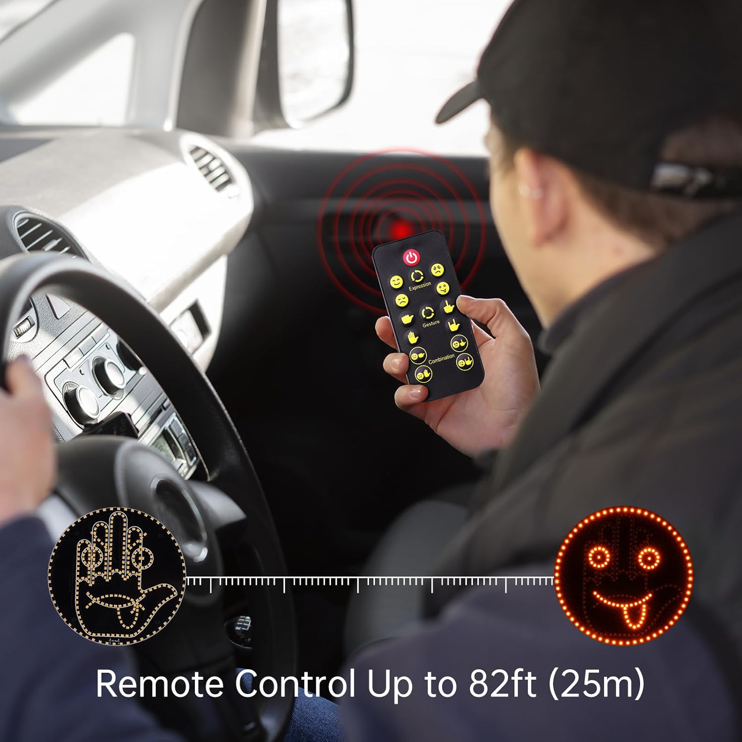AutoBizarre Car Expression Display 4 Emoticons & 4 Hand Gesture LED Fun Emoticons Gesture Lights Warning Lights With Wireless Remote Controller For All Cars, Vans & Trucks