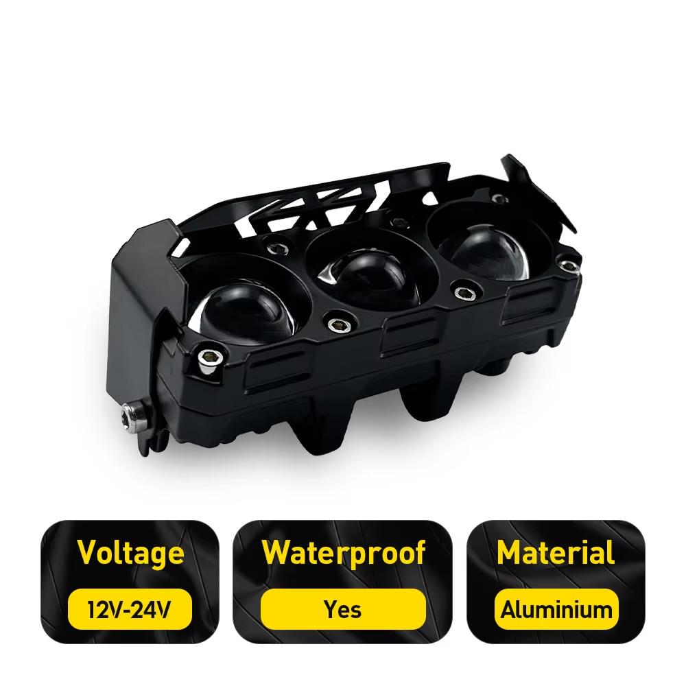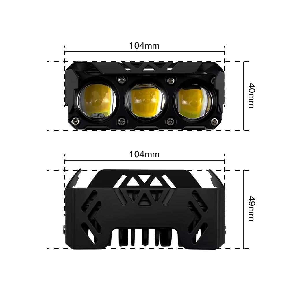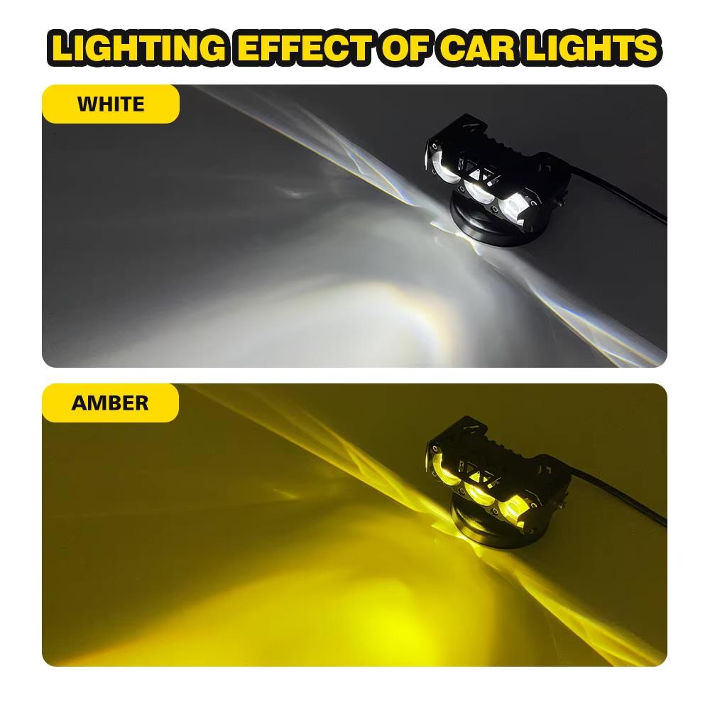 AutoBizarre Car Motorcycle 12V Headlight 3 Led Projector Lamp Dual Color Yellow White Fog Light Metal Body Spotlight Universal for All Bikes Cars SUVs etc.