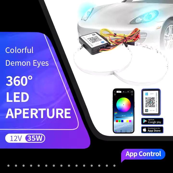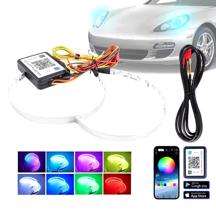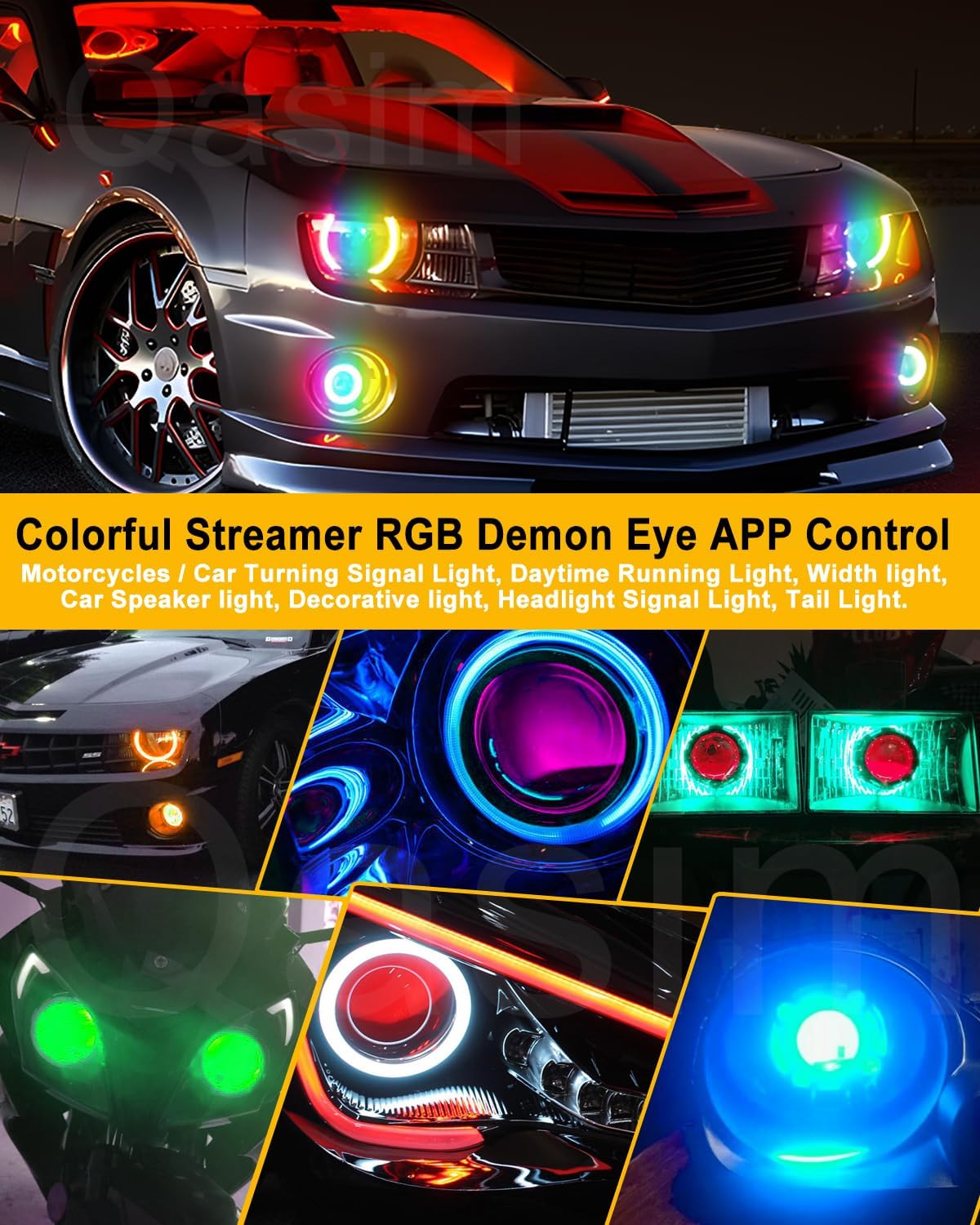 AutoBizarre Demon Eye Devil Angel Eyes RGB Halo Rings for Car & Motorcycle Projector Lenses Decorative Lights for Headlight & Taillight with App Remote Control - Set of 2