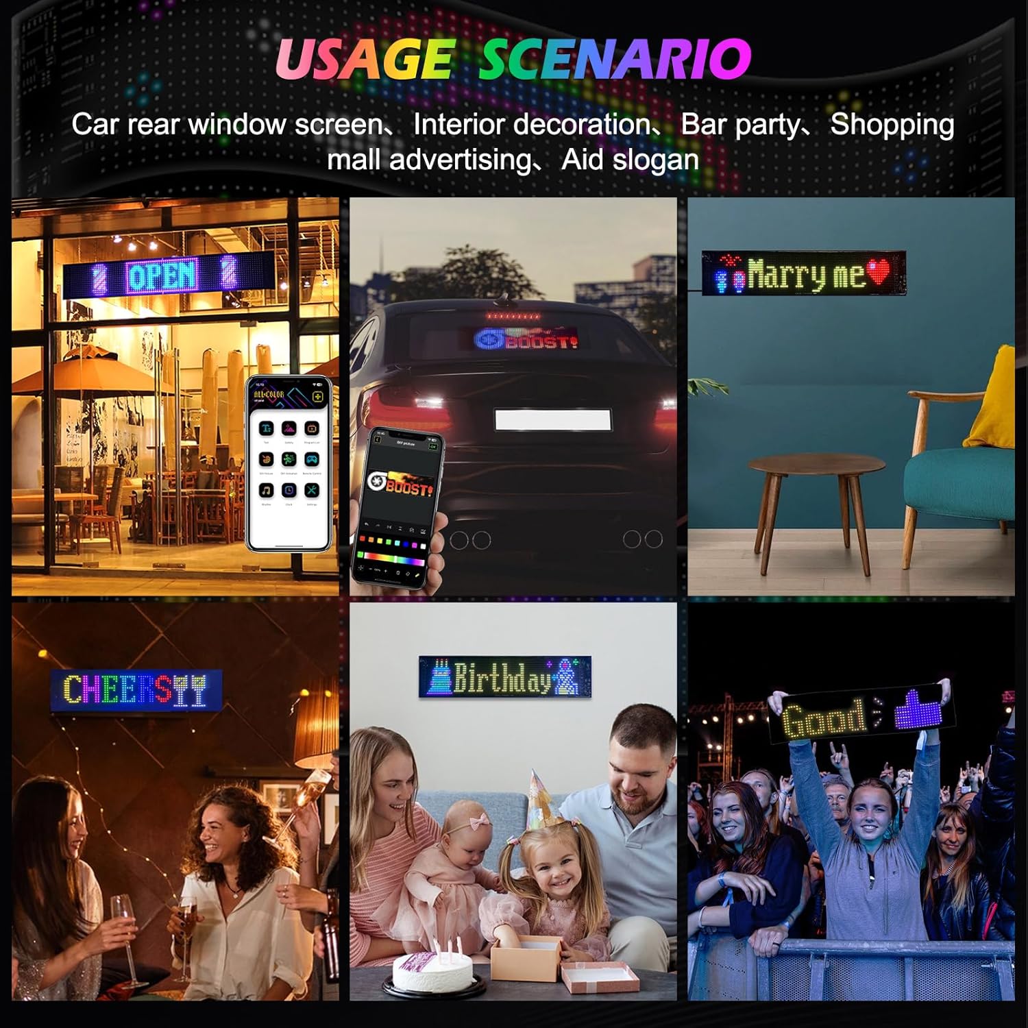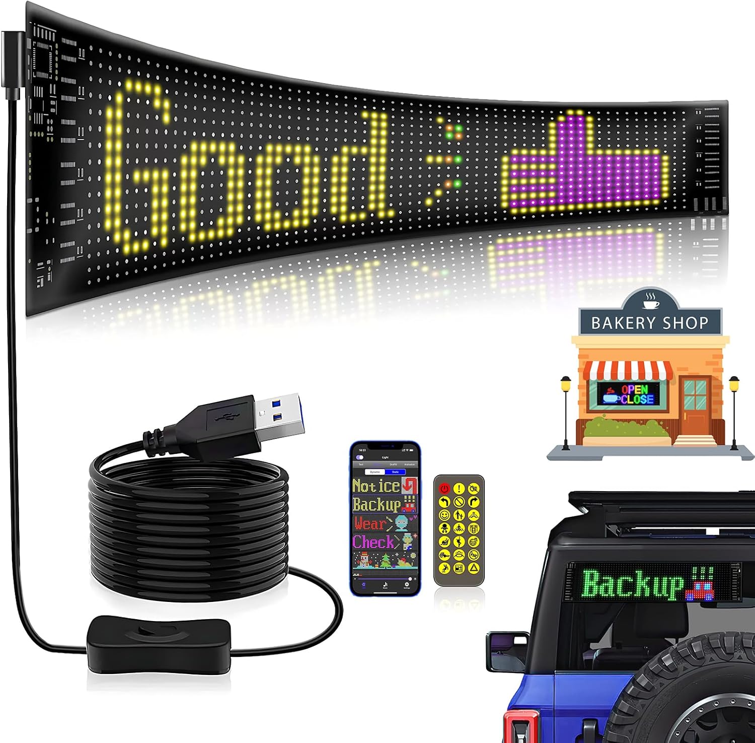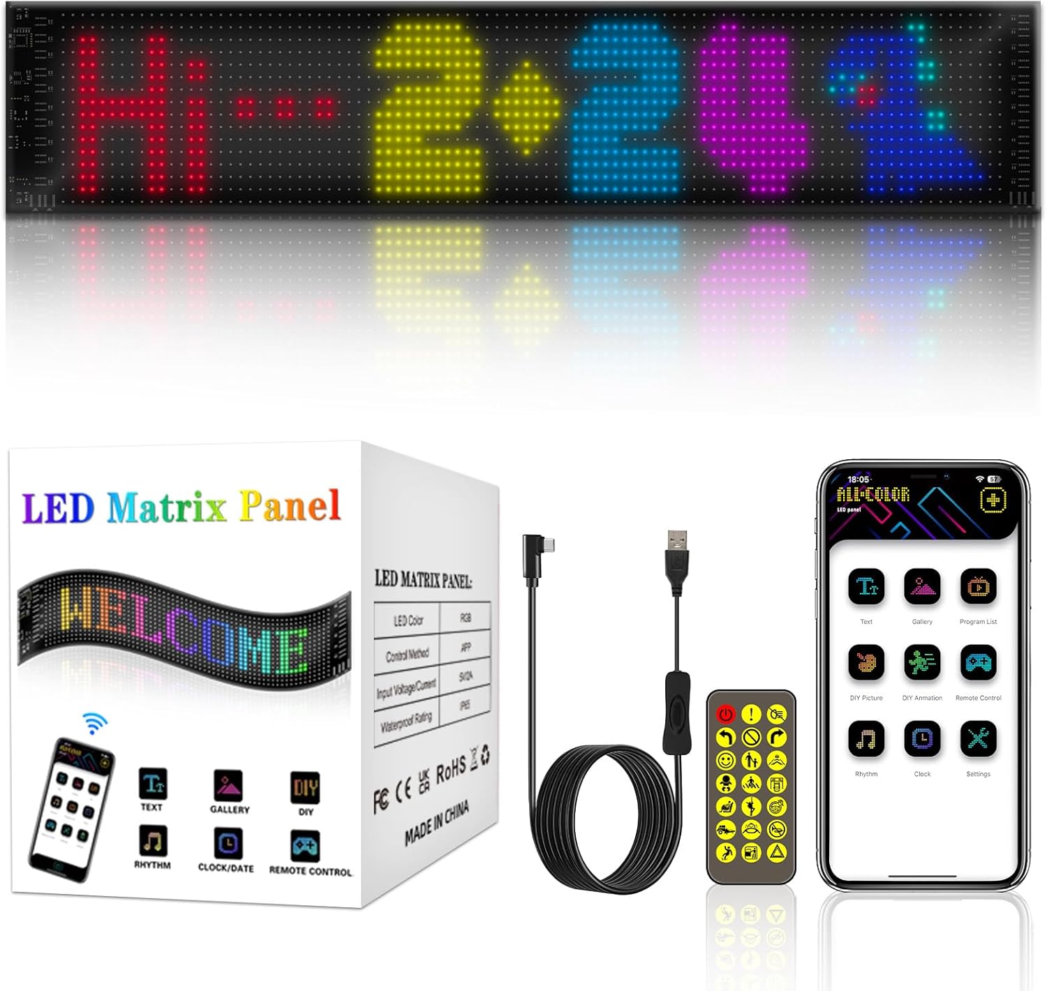 AutoBizarre 23 x 5 Inches Flexible Waterproof DIY Customizable LED Matrix Panel Display Screen Sign Board with Mobile Application and Remote Control for Cars, Home, Office, Shops etc