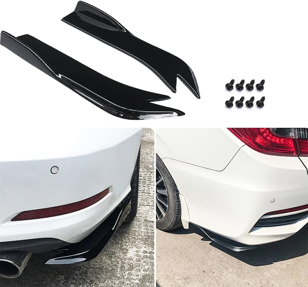 AutoBizarre Glossy Black Car Rear Bumper Lip Diffuser Splitter Canard Protector Side Skirt Spoiler Exterior Decoration Universal for All Cars - Set of 2 pcs